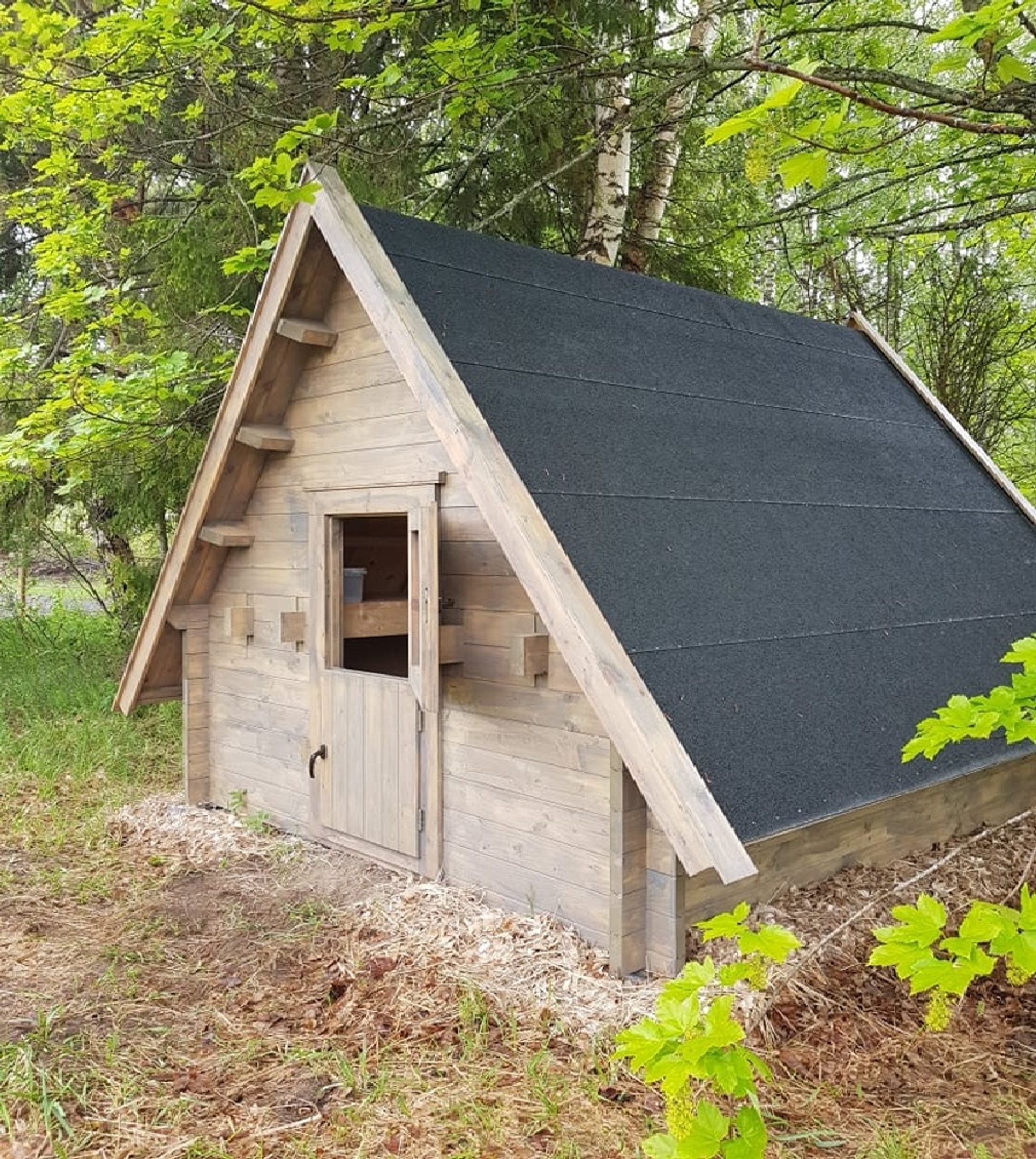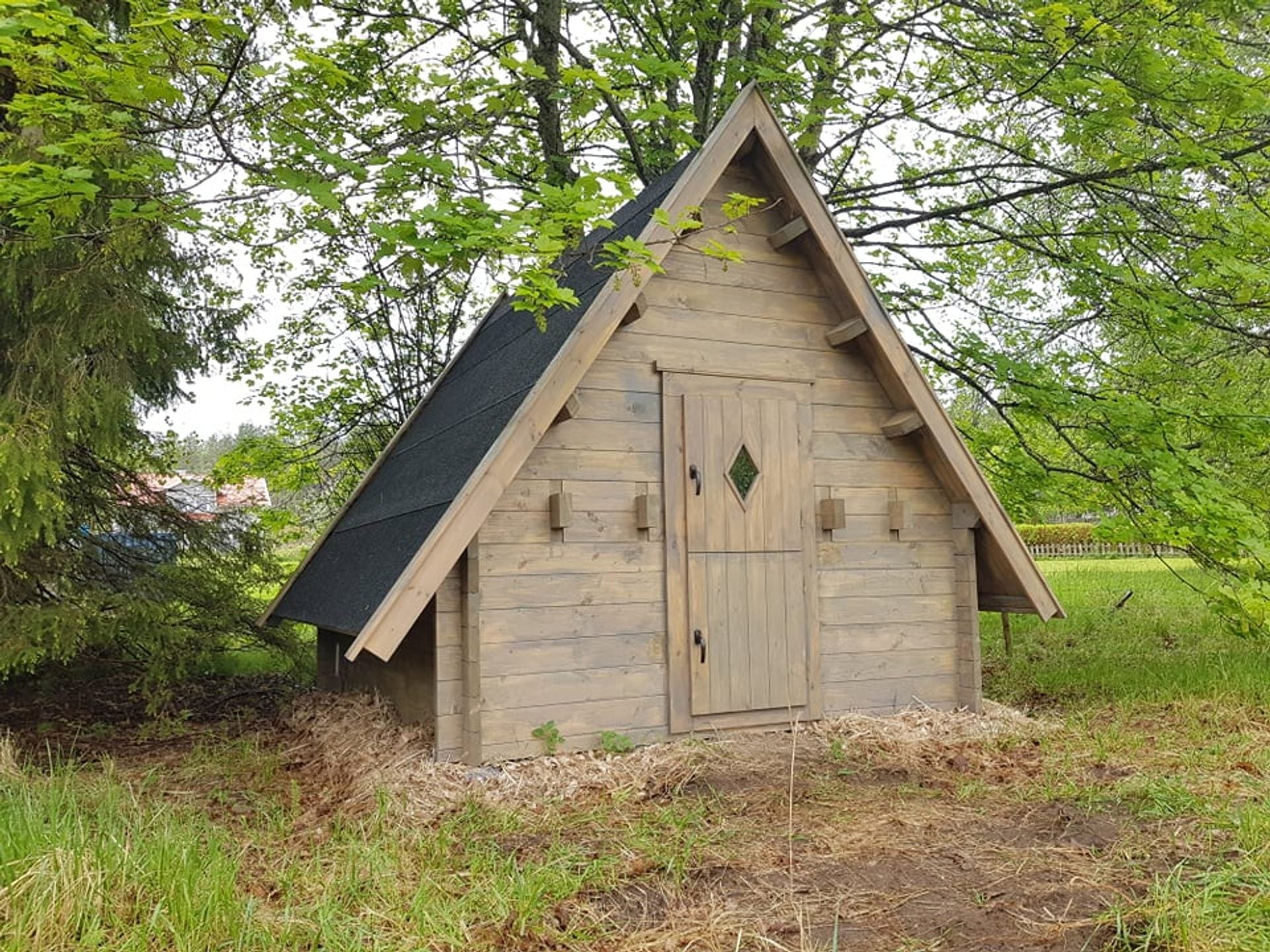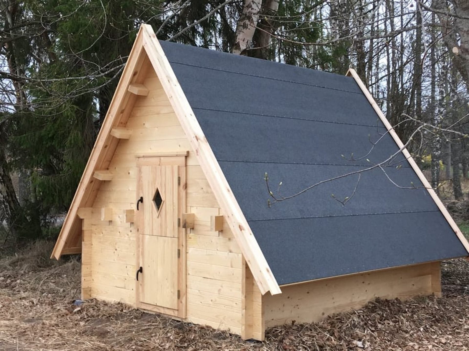 Preciosa cabaña muy original inspirada en las casas de las ovejas de Gotland, "lambgiften". Una cabaña para 2 personas con práctico espacio para guardar cosas.