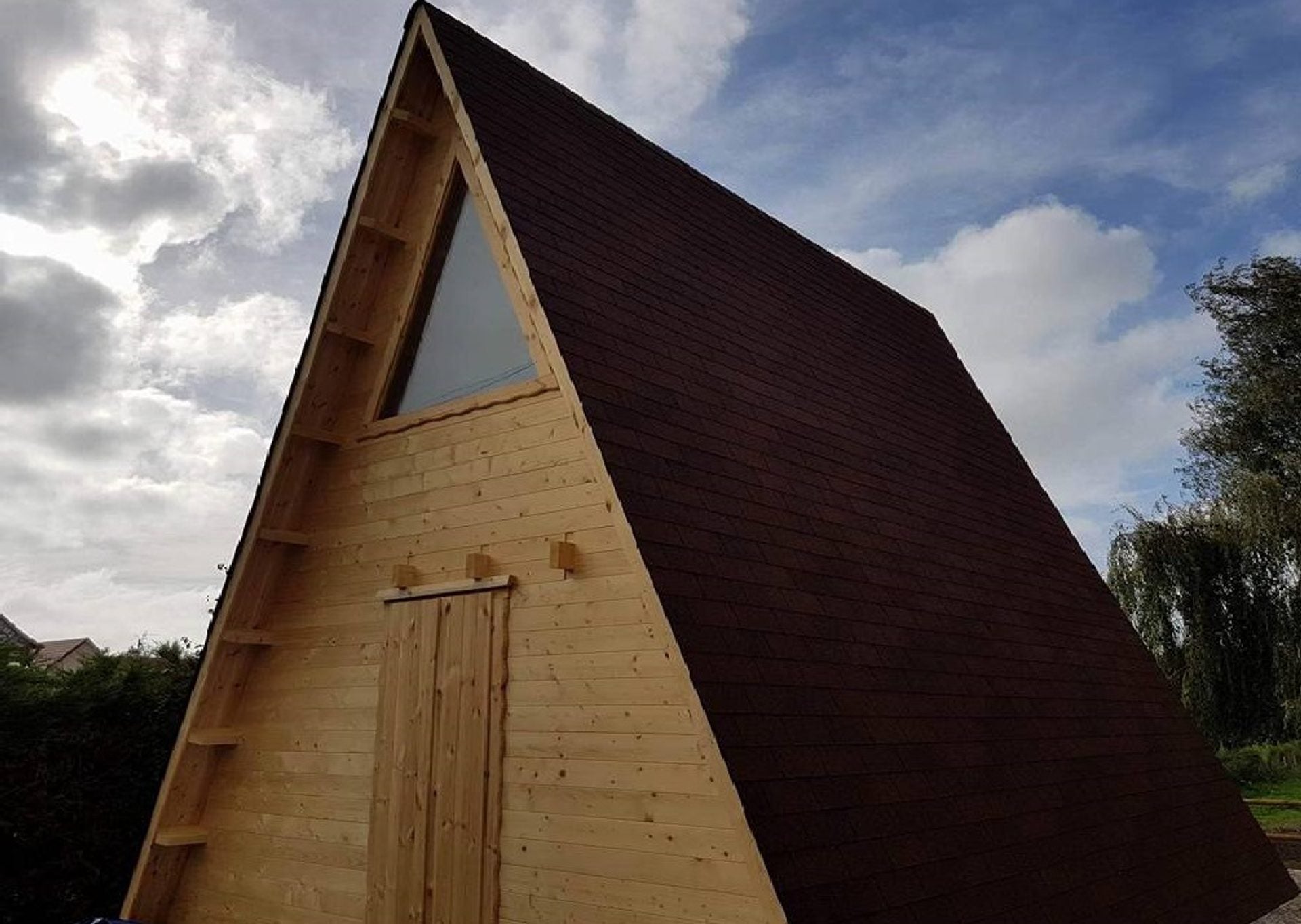 - Ventanas de apertura: ventanas de vidrio aislante de 2 cristales con barras de acristalamiento. Ventana de pie con barras de acristalamiento 760 x 1000 mm, abrible en dos posiciones, incl. barras de acristalamiento, manilla y herrajes. Puerta de entrada (puerta ventana, de 2 hojas) 800 x 2000 mm, incl. cerradura, manilla, llaves. no incluido: Revestimiento del techo, aislamiento, tornillos y clavos.
