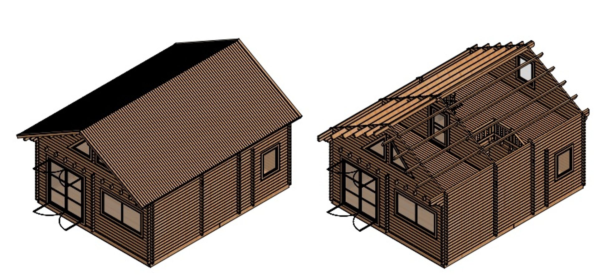 | 7500 kg | 5,7 m | 4,68 m | 7,0 m | 29 grader (valfri) | 250 kg/kvm | Planhyvlade och knuttimrade väggprofiler 60 x 130 eller 90 x 130 mm | 28 mm fint hyvlade på golvbjälkar 60 x 140/160/180/200 mm | 19 mm x 100 mm hyvlad råspont på takåsar 60 x 140/160/180/200 mm | knuttimrad 1,5-plan, valfri virkestjocklek 60 eller 90 mm (väggar) | senvuxen nordisk gran, obehandlat och omålat virke | 40 kvm | ca 44 kvm |